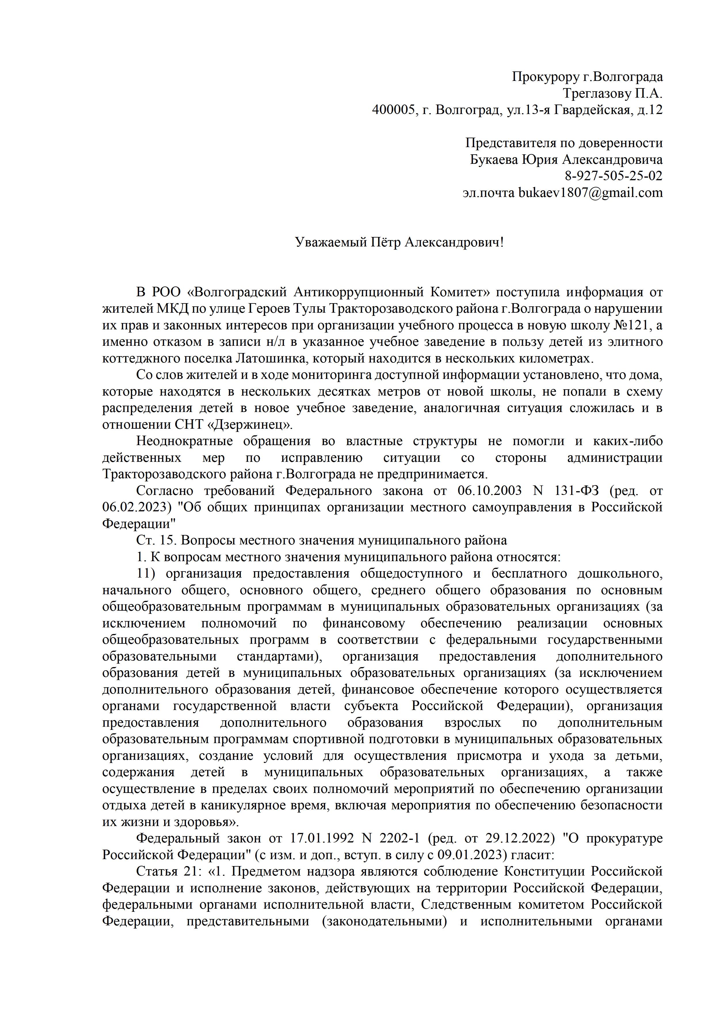 РОО «ВАК» направлено обращение в органы надзора по ситуации с новой школой для избранных в Тракторозаводском районе Волгограда. Вопрос держим на контроле. Подробнее: