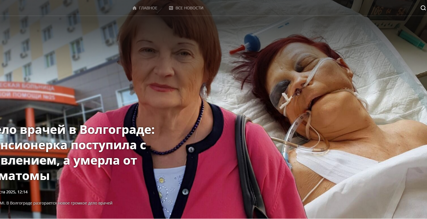В Волгограде разгорается новое громкое дело врачей. 77-летнюю Людмилу Лысцову доставили в 25-ю больницу с высоким давлением, а через трое суток её не стало — смерть наступила от черепно-мозговой травмы. Родные уверены, что врачи скрыли падение и нарушили регламент, а виновные избежали наказания. Подробнее: https://novostivolgograda.ru/news/2025-08-25/delo-vrachey-v-volgograde-pensionerka-postupila-s-davleniem-a-umerla-ot-gematomy-5462004
