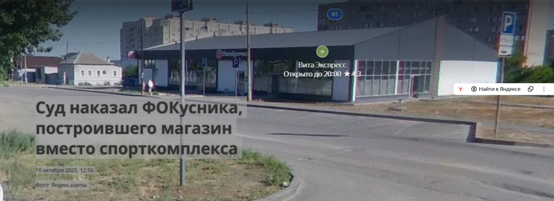 В Краснооктябрьском районе Волгограда ликвидируют крупный торговый объект, выросший на месте физкультурно-оздоровительного комплекса. Получивший на льготных условиях участок земли предприниматель незаконно приобрел, а затем продал под магазин здание огромного ФОКа. Подробнее: https://novostivolgograda.ru/news/2025-10-16/sud-nakazal-fokusnika-postroivshego-magazin-vmesto-sportkompleksa-5491967